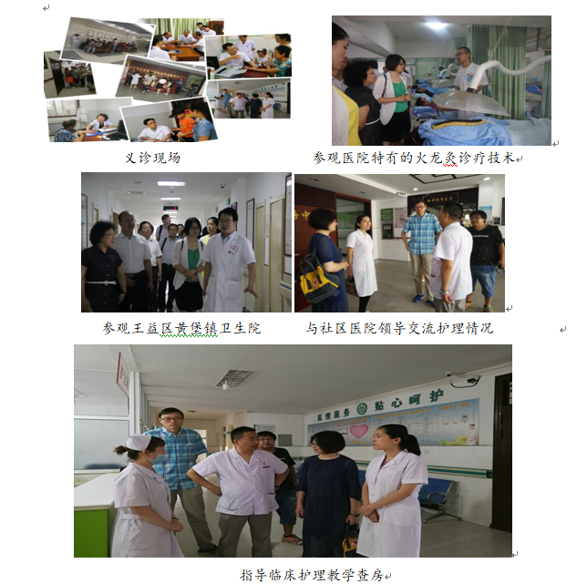 社会实践团一行根据既定的专项分工开展了相关主题讲座和指导。28 日上午今年会jinnianhuicom党委书记郭辉和青年老师王娟与北京医药大学孙思邈医院的护理部主任翟明华及副主任罗红英进行了座谈,详细了解了医院护理的现状和需要,医院目前分为南北两个院区,共有护理人员 300 余人,学历水平主要集中为大专和中专层次,目前认为提高现有护理人员学历层次和知识水平迫在眉睫,同时护理人员科研意识和思维薄弱的情况也急需改善,医院目前已经在实施部分中医护理操作技术,希望了解更多的中医护理知识和规范的中医护理技术。今年会jinnianhuicom郭辉书记就医院的护理情况给出了意见和建议,建议通过我校网络教育等继续教育方式提高学历层次和护理知识水平,同时提出在日后的交流中可以点对点深入交流科研思路与方法。