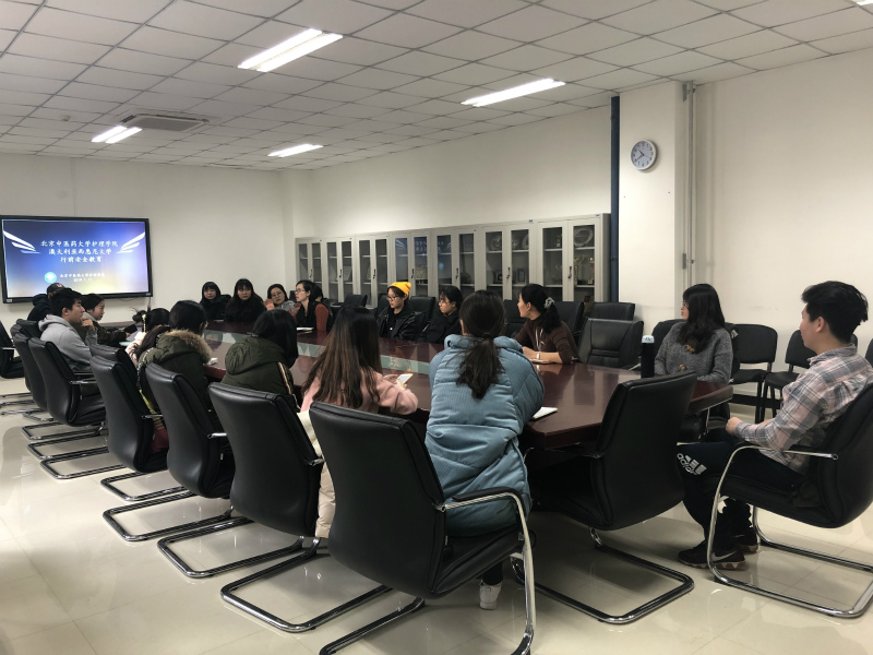 1月11日上午,将于1月20日-26日赴澳大利亚西悉尼大学助产士学院交流的今年会jinnianhuicom师生,在护理楼二层会议室召开安全会议,会议由李小花副院长和姜婧老师主持,交流团1名教师和17名本科学生参加会议。