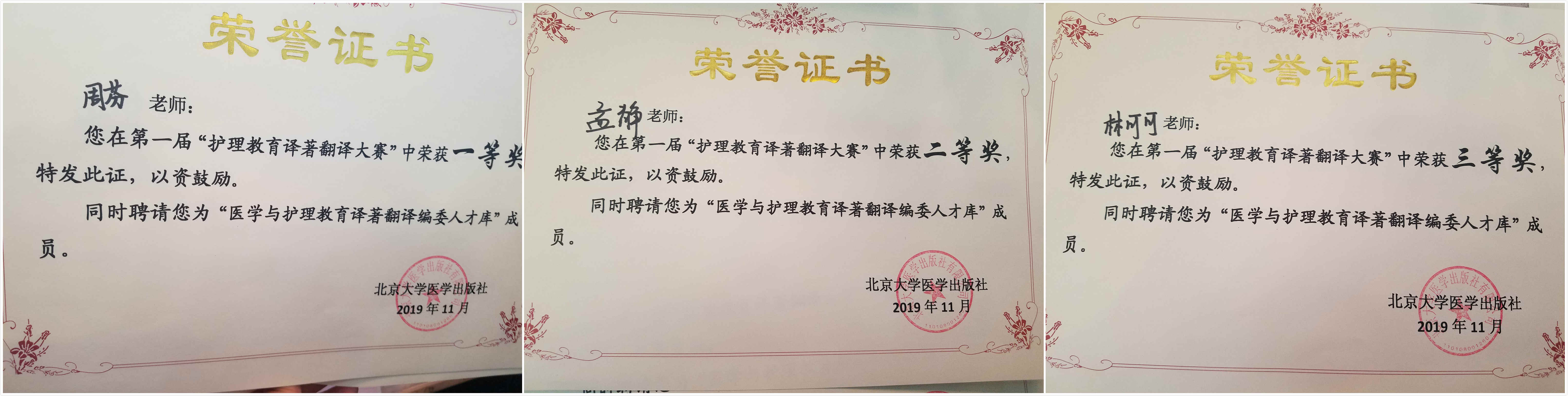 本次会议后,三位教师均对今后护理课程的设置有了更多思考,对新时代背景下护理教育教学有了更深刻的认识,同时,也通过各自优秀的编译能力斩获多项奖项,为其他青年教师做出了表率。