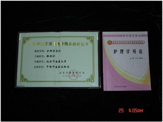 由韩丽沙院长主编的《护理学导论》被评为北京市精品教材,国家十一五规划教材。