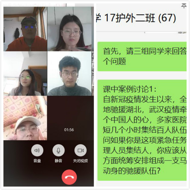 今年寒假很特殊。面对突如其来的疫情,临床护理教学部在学院统一领导和部署下,11位老师自接到学校“停课不停教、停课不停学”的通知和要求,就迅速投入到线上授课准备当中,先后5轮讨论开课方案,2月24日终于如期开课!临床护理教学部的课程均与临床护理实践密切相关,老师们在前期讨论时考虑最多的是如何让学生对临床有更多感性的认识、能够在线上授课形式下正确地理解专科护理领域的教学内容。在教学设计时,除了需要用视频、图片等帮助学生理解,老师们更多提到的是结合案例,采用小组讨论的方式,以任务为驱动,推进线上教学目标的实现。