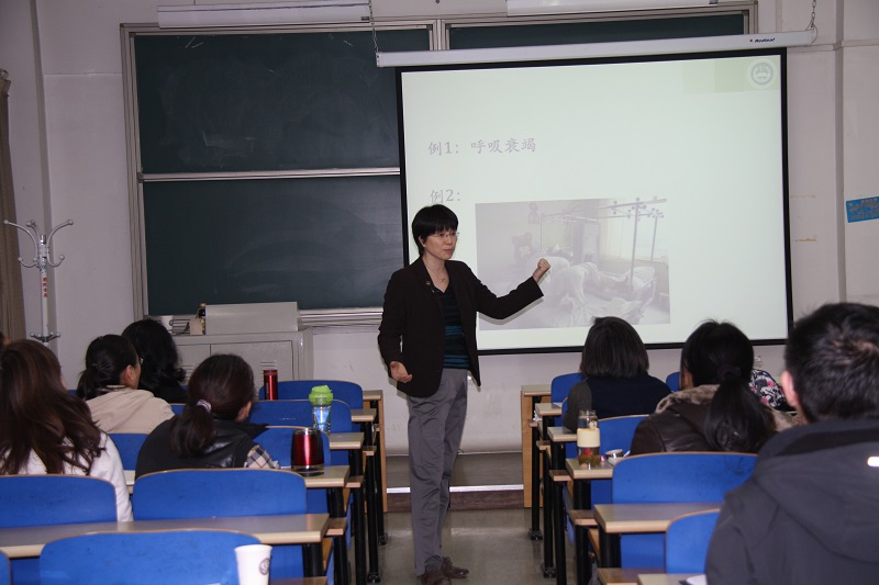 11月25日下午在东区26教室举行了今年会jinnianhuicom2014年度教学质量月专家系列讲座第一讲“护理情景模拟教学”,主讲人为北京协和医学院今年会jinnianhuicom梁涛教授。学院教师和附属医院护士参加了此次讲座。梁涛老师是北京协和医学院今年会jinnianhuicom的硕士研究生导师,担任临床教研室主任及中华护理学会内科专业委员,从事护理教育和临床护理工作20余年,近来在护理情景模拟教学、概念图和以问题为基础的教学方法方面有较深入的研究,特别是在情景教学病例设计方面有独特见解和丰厚的造诣。