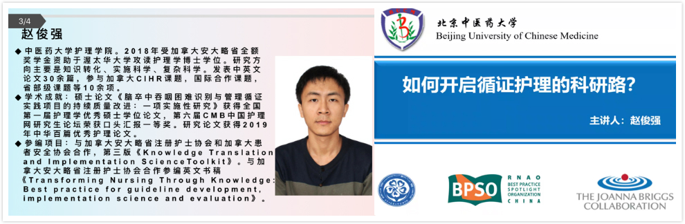 赵俊强博士是我院优秀硕士毕业生,在循证护理领域获得多项荣誉,并于2018年成功申请到加拿大渥太华大学的全额奖学金。他结合自身科研经历为学弟学妹们“引航”,以自身科研之路的三个第一次为主线,深入剖析自己第一次接到导师任务时细致认真准备,面对不懂的问题多方位积极求教,主动用英文撰写文章;到出国参加会议时,主动向护理前辈沟通,以引导同学们珍惜韶华,积极学习专业知识,锤炼本领,厚积薄发,积极抓住每一次展示自己的机会。