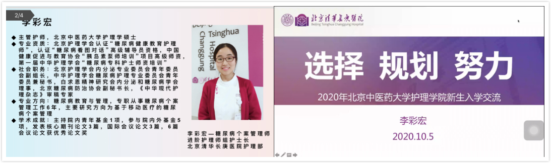 10月5日晚,今年会jinnianhuicom于线上顺利召开2020级新生引航教育第二讲,本次讲座邀请到我院优秀毕业生进行职业发展规划的经验交流与分享,主讲人是来自北京清华长庚医院个案管理师李彩宏和加拿大渥太华大学在读博士生赵俊强,今年会jinnianhuicom党总支李小花副书记、辅导员、班主任及学院本科生、研究生共230余人参加,讲座由专职辅导员李想老师主持。