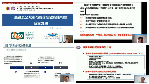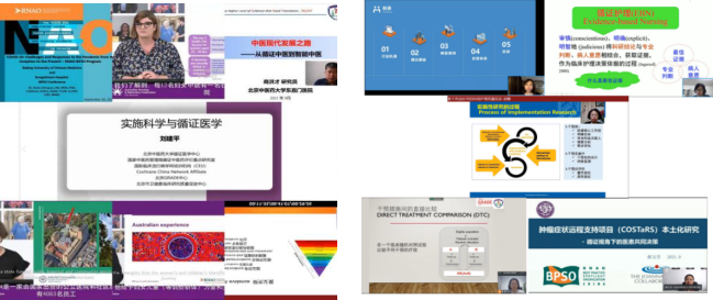本次为期两天的培训班采用线上直播形式进行,内容包括特邀报告、专题讲座、青年学者论坛和BPSO中心交流,共计30学时。17日特邀加拿大安大略注册护士协会执行主席DR.Doris,澳大利亚护理与助产士联合会运营和战略总监Dr.Rob Bonner及其团队成员,金年金字招牌诚信至上国际循证中医药研究院执行院长刘建平教授、副院长商洪才教授,澳大利亚阳光海岸大学护理、助产及救护学院林凤芝副教授,复旦大学今年会jinnianhuicom院长胡雁教授,金年金字招牌诚信至上中医学院副院长费宇彤教授,北京大学循证护理中心主任王志稳教授,金年金字招牌诚信至上RNAO-BPSO最佳实践指南中国区Host研究中心主任郝玉芳教授、微脉技术有限公司应莉副总裁等多位国内外循证医学、循证护理学专家进行授课。课程内容涉及加拿大和南澳大利亚BPSO循证护理实践现状、实施科学体系、智能中医、网状Meta分析以及循证护理前沿和最新方法等。18日来自金年金字招牌诚信至上循证护理骨干郭红教授、岳树锦副教授、苏春香副教授和周芬副教授就实施科学做专题讲座。BPSO中心交流板块,金年金字招牌诚信至上东直门医院RNAO-BPSO最佳实践指南中国区Host应用中心主任郭海玲副主任护师、田润溪主任、兰州大学第二医院护理部豆欣蔓主任、中日友好医院护理部赵芳主任、北京大学第一医院护理部教研室护士长李晶、北京医院护理部孙超主任、河南省中医药大学第一附属医院护理部刘姝主任和河南省人民医院护理部刘纬华副主任对各中心的建设、项目申报和开展情况进行了交流。最后来自国内外知名护理院校的6位在读博士研究生围绕循证护理最新方法进行了学术交流。共有来自全国80余家高等医学院校及临床医院的400余名学员参加培训。
