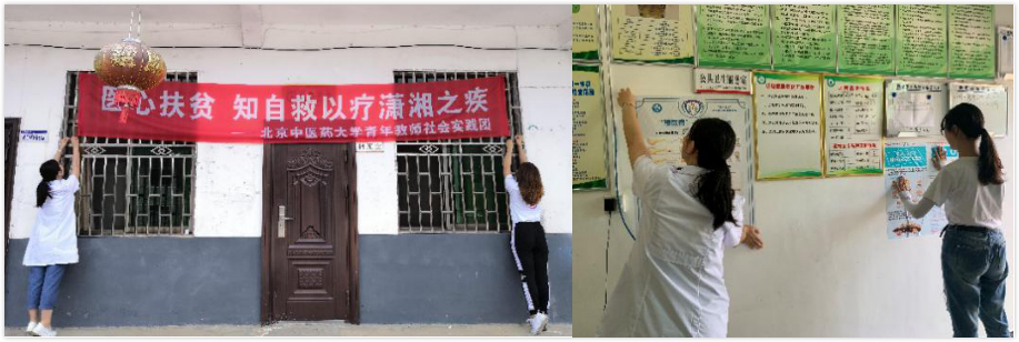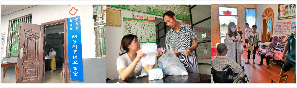 为了积极响应国家战略,服务乡村发展,本着拳拳赤子心,回馈家乡情的初衷,北中医师生开展了本项目。7月21~23日,实践团队的第一梯队人员——晏利姣教师带领研究生李学靖、马睛雅、周雅静先抵达,与桐子树下村村委就当地医疗情况及村民健康情况进行了初步交流和调查,随后在村委的带领下调研了当地的医疗现状并应用“中国居民健康素养调查问卷”了解当地居民健康素养水平。调研发现该地区存在严重卫生医疗资源不足的现象。虽已经基本上建成初步的县医院——乡镇卫生院——村卫生室三级医疗卫生网络。但是村卫生室条件普遍很差,村医疗室只有一位医生,村卫生室设医生家里,没有按人口、交通分布设立极不合理。调查地区农村居民新农合参合率为99.5%;居民健康知识知晓率水平较低,其中具备传染病预防素养的居民仅占10.4%,具备慢性病预防素养的居民仅占8.4%。