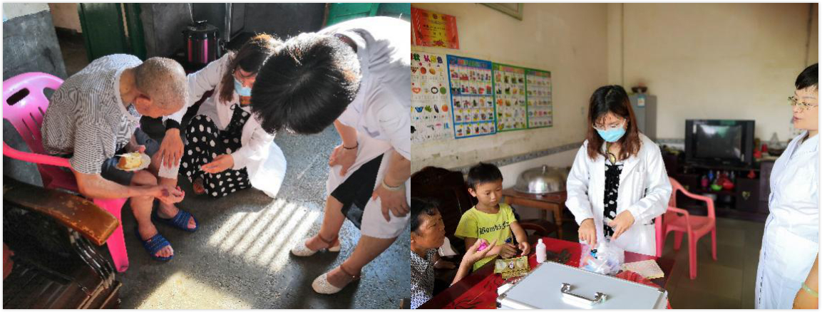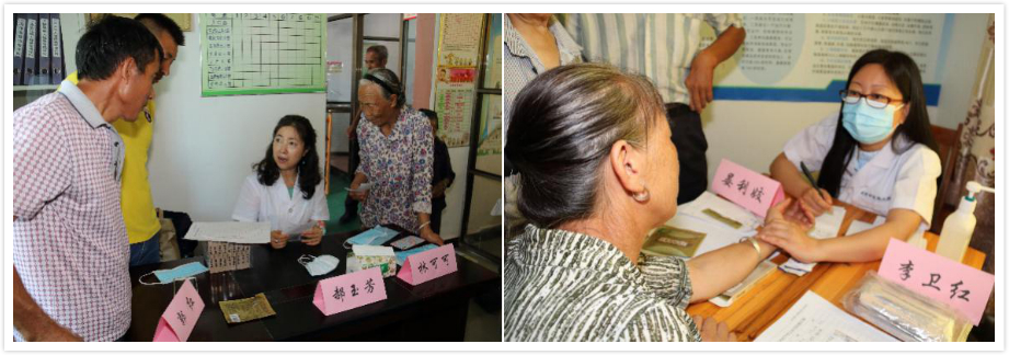 7月29日,通过发放急救宣传册子和团队中具有AHA急救培训资格的导师现场示范等形式,对村民进行急救培训。团队成员认真讲解包括心肺脑复苏术、烫伤处理、溺水急救、止血、包扎和骨折固定等符合当地需求的急救知识,手把手教学,直到村民学会为止。通过这些活动让广大村民意识到掌握急救知识的必要性,并且在遇到突发情况时能够正确合理地运用急救措施。当天,郝玉芳教授和郭红副教授分别带队入贫困户进行义诊、赠送药物、进行健康宣教等。