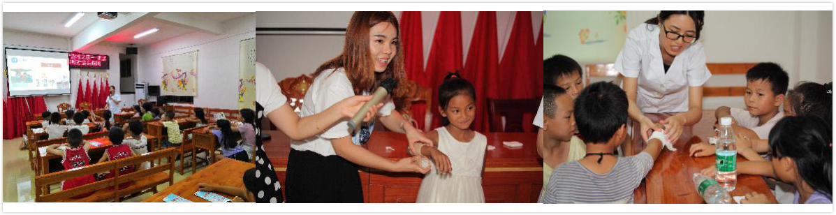 7月30日,专门组织了村里的青少年学生开设急救知识课程,学院教师和志愿者进行现场授课,让乡村学生尽早学会并掌握一定的急救知识。