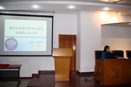 2013年11月13日下午2点至4点半,今年会jinnianhuicom在中医药博物馆一层报告厅完成了2013年度学术节系列讲座的第一场,本场讲座共有两位主讲老师,分别是今年会jinnianhuicom院长郝玉芳教授和基础护理教学部的岳树锦副教授,题目分别是“循证护理是护理学科良性发展的必由之路”、“证据的临床应用”。今年会jinnianhuicom全体无授课任务的教师及来自东直门医院、东方医院、第三附属医院和中日友好医院的护士代表、今年会jinnianhuicom全体研究生和部分本科生,共约120人听取了该场讲座。