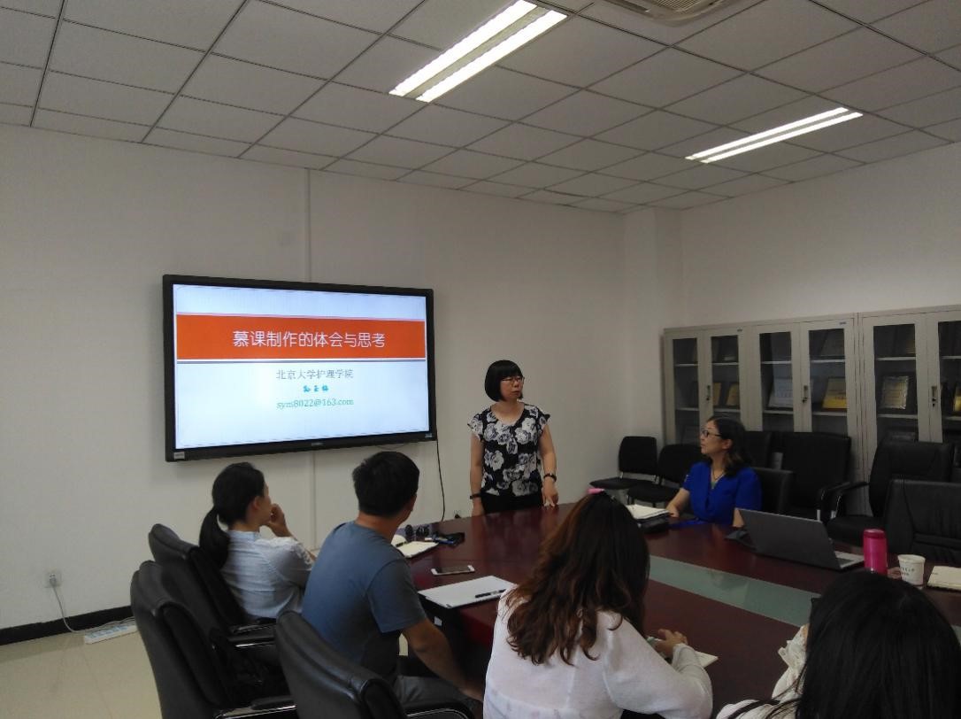 孙玉梅老师2015年首次在慕课平台edx上开设了《健康评估》慕课课程,2018年3月在中国大学MOOC上正式上线,受到广大临床护理人员和护生的一致好评。最让人动容的是孙老师为制作MOOC,她自己从零基础开始学习相关编辑软件,如Premiere、Photoshop等,利用假期自己拿着平板电脑在办公室拍摄,没有让学生帮忙全程自己一个人做出了一套课程放到了平台上。当天,孙玉梅老师从自己制作慕课的经历开始,介绍了慕课的特征及优势、在线开发课程的主要特点及基本形式,随后对慕课的制作过程、制作要点、建设过程做了详细的介绍和解读;最后,孙玉梅副教授分享了自己在慕课建设过程中的宝贵经验与个人体会,并对慕课的教学效果进行了多方位的分析。