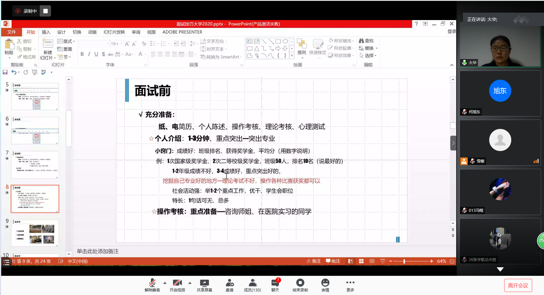 受新冠疫情影响和招生规模扩大双重压力,我校护理学专业2021届毕业生就业形势严峻,为帮助同学们掌握面试技巧,提高面试成功率,11月3日晚,学院面向2021届毕业生举办线上面试技巧专题培训。培训邀请金年金字招牌诚信至上第三附属医院护理部主任张大华老师作为主讲,她立足岗位胜任力,结合护理专业特点,进行针对性指导,主要内容围绕面试环节与面试技巧展开,2021届本科、硕士研究生共180余人参加讲座。