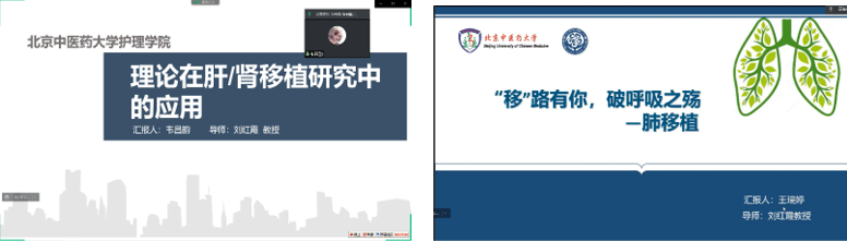 此后,刘红霞教授团队的研究生韦昌韵和王瑞婷分别就肝肾移植和肺移植做了汇报。韦昌韵讲述了相关护理理论在肝/肾移植研究中的应用,同时希望学弟学妹们认真思考自己为什么要读研?并希望学弟学妹们提前对自身未来的发展进行清晰的规划。王瑞婷汇报了我国肺移植的发展历程,并介绍团队在肺移植这一新兴领域开展的相关研究,同时也结合自身经历讲述了考研的初衷与感受。最后鼓励学弟学妹们加入团队,为器官移植这一群体发挥护理的温度。