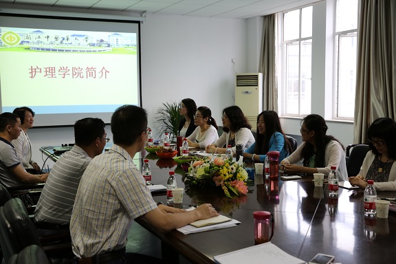 座谈会上,我校今年会jinnianhuicom郝玉芳院长首先介绍了此次调研的主要目的,浙江中医药大学今年会jinnianhuicom何桂娟副院长(主持工作)从师资队伍、教育教学、科学研究、社会服务、党建与学生工作等各方面介绍总体情况,刘师少副书记(主持工作)就党员教育培训体系、品牌党员志愿服务队、“天使之翼”党员之家建设、同等学历课程班的开展等方面进行说明,沈翠珍副院长就如何推广“护教一体化”、中医教学师资情况、后期临床教学质量监控、新教师培养等方面做进一步说明,董凯峰副书记就“天使之路”系列活动、网络公众平台建设以及如何通过第二课堂培养学生的核心能力等问题进行了全面剖析。之后双方就临床护理教学改革、新教师培养、学科发展、学生管理等各个方面进行深入的沟通和交流。通过介绍和交流,调研人员深切体会浙江中医药大学今年会jinnianhuicom近两年发展目标明确、发展速度很快,尤其是在新教师的培养和教育教学改革方面的尝试非常值得学习和借鉴。调研人员还参观考察了浙江中医药大学临床技能训练中心,为我校更好的规划建设良乡新校区护理实验中心提供参考。