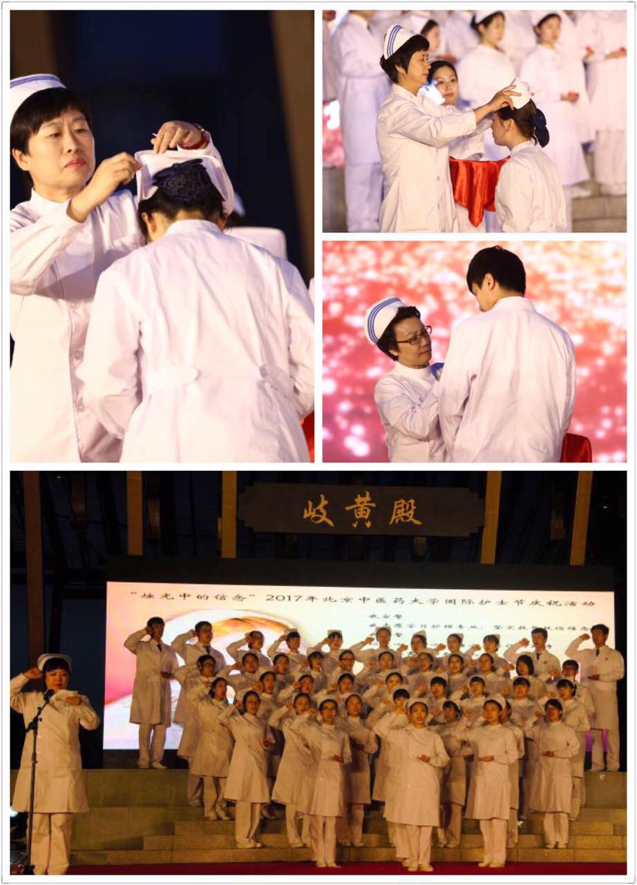 随后庄严而隆重的授帽仪式拉开帷幕,今年会jinnianhuicom院长郝玉芳教授、金年金字招牌诚信至上第一临床医学院护理部郭海玲主任、金年金字招牌诚信至上第二临床医学院护理部焦蕴兰主任、金年金字招牌诚信至上第三临床医学院护理部唐玲主任、北京中医医院护理部郝丽主任、望京医院护理部曹艳霞主任以及眼科医院护理部黄少兰主任为2014级本科班、对外交流班、2015级高职班的42名优秀学生代表授帽,西苑医院护理部李静主任带领同学们进行宣誓,学生们在烛光和誓言中接受了职业精神的洗礼。