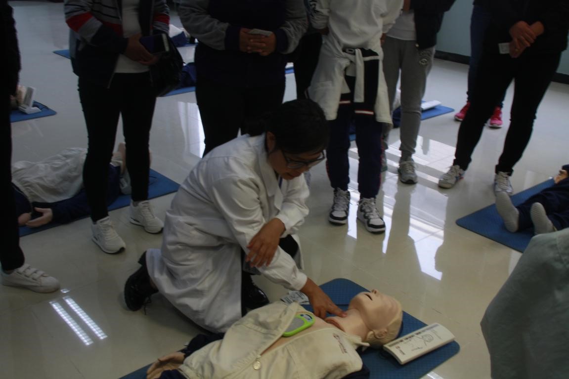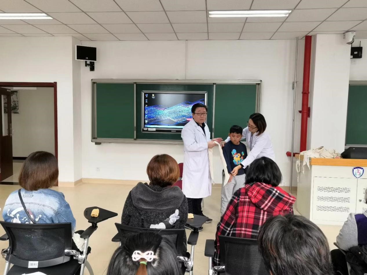 10 月14日,今年会jinnianhuicom迎来了官道中心校百余名教师和家长,这些教师和家长满怀对急救知识的渴求走进金年金字招牌诚信至上的校园,接受了我校今年会jinnianhuicom六位老师的急救知识培训。通过我院林可可、王惠峰、刘宇、晏利姣、杨丽丽老师以及金年金字招牌诚信至上附属东方医院急诊科孙磊护士长对心肺复苏、外伤包扎和生活中出现鼻出血、溺水等意外伤害的处理方法声情并茂的讲授,使现场的学习者重新认识了如何进行救助的正确的方法。此外,我院老师还为大家介绍了一些常识性的知识比如“如何洗手”“如何拨打 1 2 0 ”,使大家更加深刻的认识到洗手的重要性以及如何镇定有效的拨打 1 2 0 急救电话。随后,在我院老师及研究生同学指导下,官道中心校的教师和家长进行了外伤包扎和心肺复苏的实践体验,使得他们进一步巩固了急救培训中所学的内容,同时增强了培训课堂的实用性和趣味性。在体验课堂上,我们感受到了学生教师和家长对这些基础急救知识的浓厚学习兴趣。此外官道中心校聂校长、魏校长以及范主任对此次培训极为重视,全程支持并参加了此次培训,在官道中心校校领导与我院共同组织下,此次培训获得圆满成功,使全体学员受益匪浅,更为孩子们的生命安全撑起一道绿色的屏障。