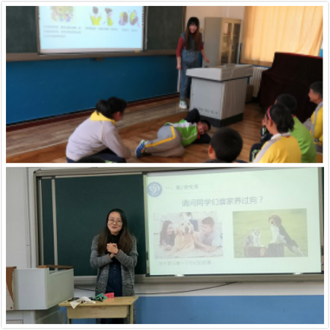 两场培训内容相似,在第一部分环境相关急症中,主要讲授了关于猫狗咬伤、蜜蜂叮咬的处理,地震、火灾等突发情况的紧急处理等十项内容,同学们都踊跃发言、积极提问,并积极参与情景剧表演等互动过程中,现场气氛活跃。