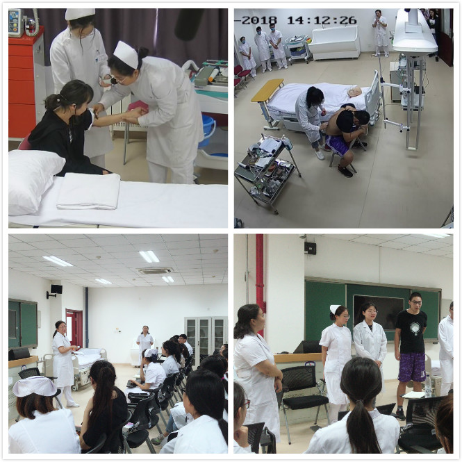 在教学过程中,学院注重提高学生的实践操作能力和临床护理思维能力的训练,在仿真的环境下,通过学生实践操作来启发思维、加深记忆。《内科护理学》与《中医护理学Ⅱ》课程组多次进行讨论,对肺炎典型病例进行事件设计,选择能充分培养学生临床护理思维、中西医护理技能的内容撰写情景模拟病例。学生在收到病例后自主查询资料、编写脚本,同时实验中心向学生进行开放,学生自行参观、熟悉环境与实验用物,为情景模拟做好充分准备。