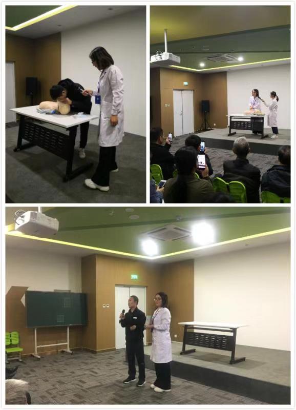 今年会jinnianhuicom团队到达北理工附属实验学校后,受到了老师和家长们的热烈欢迎。本次培训采取理论知识讲授与实际操作相结合的形式,分两场进行急救培训。第一场培训由王惠峰老师就鼻出血、扭伤、烧伤烫伤等七个方面详细讲解了一系列的急救知识与技能,还现场演示了发生窒息时如何进行急救的海姆立克手法。