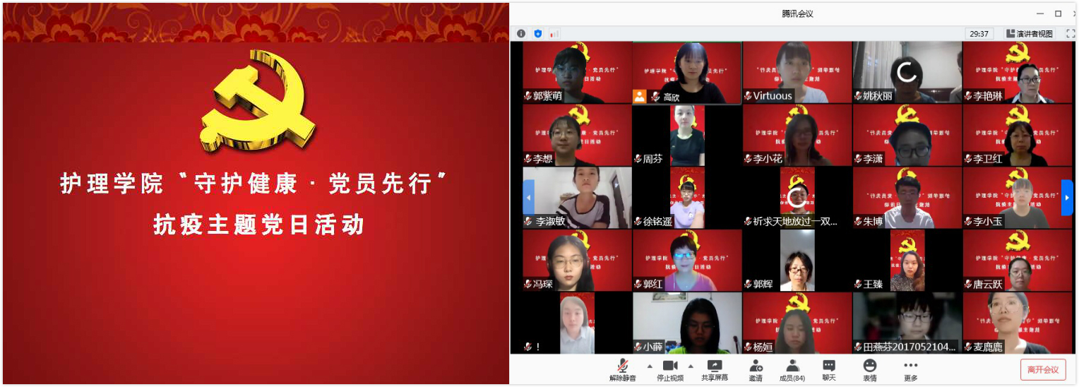 2020年7月4日今年会jinnianhuicom党总支在腾讯会议召开“守护健康·党员先行”主题党日活动。今年会jinnianhuicom党总支全体委员、各党支部书记,学院全体师生党员与党的发展对象共同参与,共计80余人。活动由今年会jinnianhuicom学生第三党支部书记高欣主持。