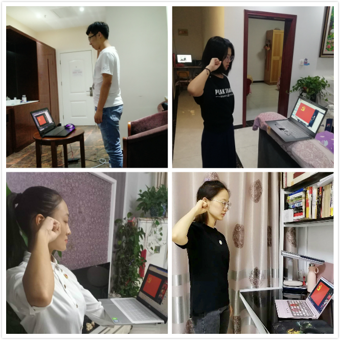 党总支书记郭辉表示这是一场意义非凡的主题党日活动,分享和交流都非常深入,情真意切,在这个特殊的年份,特殊的毕业季,虽然一直未能与大家相聚,却深深感受到了我们党员师生的榜样力量,希望我们全体党员继续坚定理想信念,在今后的工作学习岗位中,不忘初心、牢记使命,继续发挥党员的先锋模范作用,服务于国家人民、报效于国家人民。活动最后,郭辉书记带领全体党员高举右手,在党旗下重温入党誓词,为中国共产党99岁生日送上祝福。