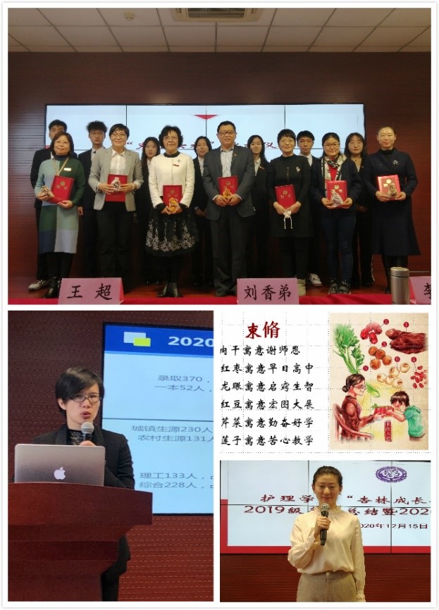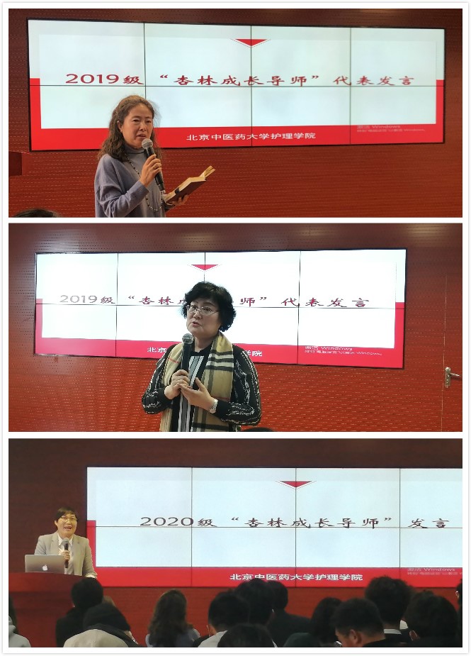 最后,郝玉芳教授及马克思主义学院李玮书记代表2019级杏林成长导师交流发言。郝玉芳教授从团训、学术、专题讲座、创新创业几个方面做了分享,为导师们今后开展辅导工作提供了宝贵经验。李玮书记围绕感谢、感慨、感恩进行了分享,表达了对今年会jinnianhuicom的感谢及对疫情期间线上活动的感慨,并号召同学们要感恩父母和老师,做德行、品行端正的护理学子。今年会jinnianhuicom岳树锦副院长代表2020级杏林成长导师进行了发言,岳老师表示会承担起导师的责任与担当,今后会将立德树人作为首要任务,以自身的职业经历培养同学们的职业情感,并希望同学们树立信心,学好本领,将来承担起健康中国和应对人口老龄化的责任。
