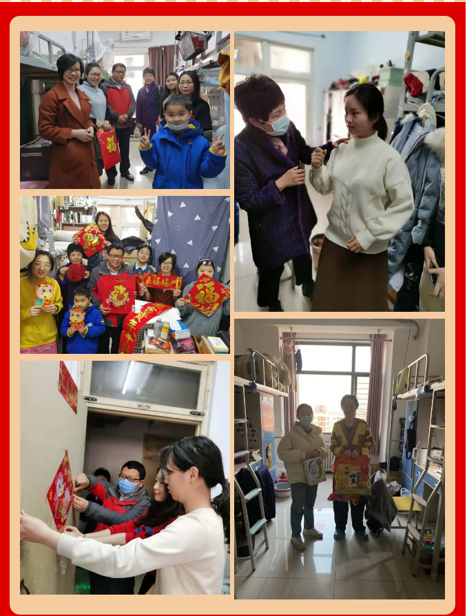 2月11日上午,今年会jinnianhuicom书记王超、院长刘香弟、副书记李小花共同看望了和平街校区的86名留校学生,并为他们送去慰问品。领导们详细询问了同学们的饮食起居情况、实习情况,叮嘱他们严格遵守实习医院和学校的疫情防控政策,做好个人防护,互相关心关爱;提醒大家离家在外也不忘多同父母亲朋联系,沟通在校情况,避免父母亲朋担心;积极锻炼身体、做好防护,充分利用在校时光,不断充实和提升自己。随后,三位领导与同学们一同贴窗花、春联和福字,一张张福字、一副副春联汇聚起冬日里的暖流,承载着学院对同学们亲切的关怀和新春的祝福。