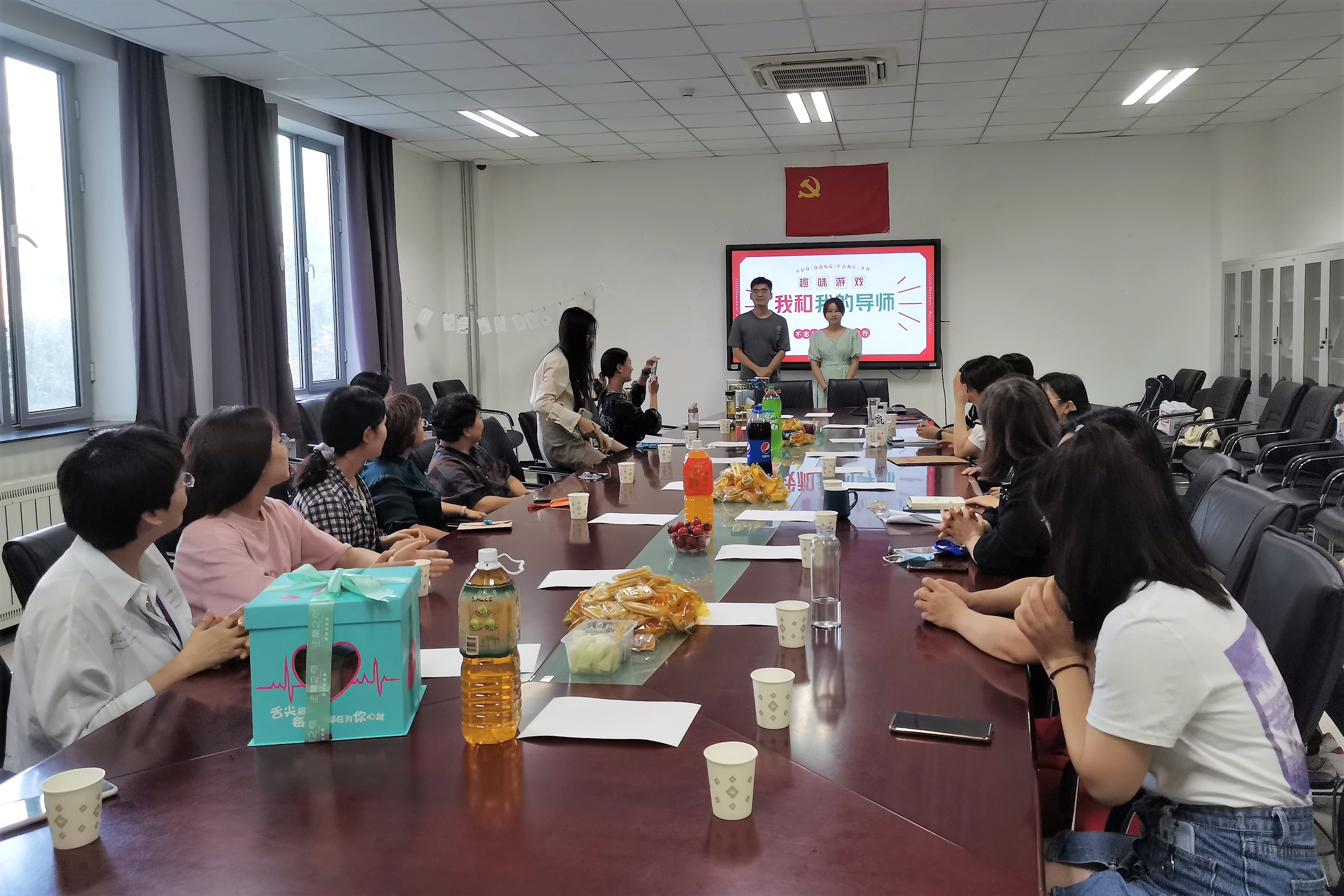 接下来是游戏环节,全体师生一起参与了“数字炸弹”、“害,你在心口难开”和“听歌识曲”小游戏。尤其在“听歌识曲”游戏中,许多导师一展歌喉,展示了导师生活中风趣幽默的一面。本次活动许多游戏环节设置为导师与研究生一组相互配合,在共同接受奖励和惩罚中增进了彼此之间的感情,现场充满了导师和研究生们的欢声笑语。