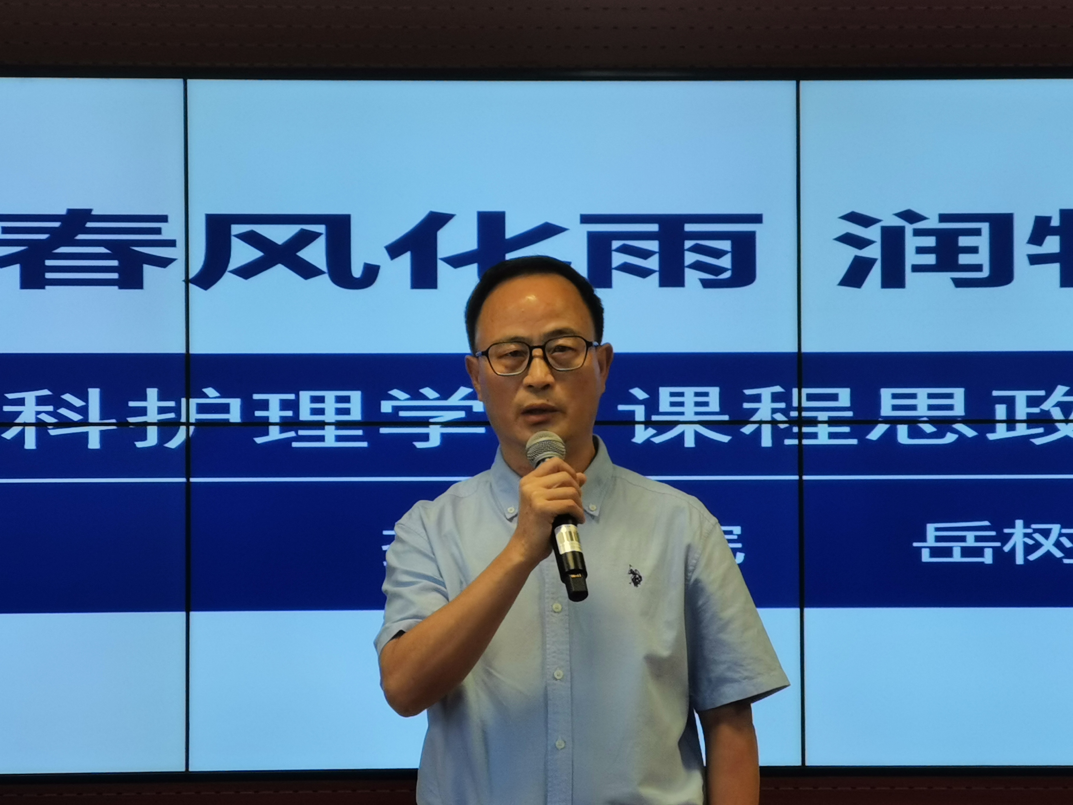 接下来,《外科护理学》课程主讲教师岳树锦副教授进行了示范教学。岳树锦副教授本着“确立专业课程育人的教育理念,挖掘专业课程育人的思政元素,创新专业课程育人的教学方式”的建设思路,通过《外科护理学》课程中的胸腔闭式引流,胆道疾病的T管护理以及大肠癌患者的护理内容设计思政元素,将专业知识嵌入人文,发掘教学背景资源,用技能操作渗透关爱,让同学们深入认识专业课程深度和丰富内涵,激发学生对职业认同,感受职业价值,坚定职业信念。