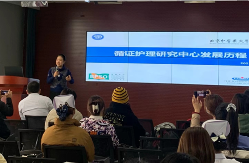 在首期开放活动中,郝玉芳教授以“循证护理研究中心发展历程”为主题与同学们分享了自己的循证求学经历,从早起接触循证护理理念到将其与中西医护理结合,成立团队开展深入科学研究,再到制定中医护理标准和指南。通过不断探索研究,郝教授总结出指南临床应用、不同级别证据综合、中医护理技术规范化以及中医优势病种护理方案构建的方法学。郝教授以自己的科研经历告诉同学们,科研工作取得辉煌成绩的背后有太多的艰辛和尝试,需要同学们脚踏实地学习和探索,希望同学们通过基于循证方法学正在开展的脑卒中、糖尿病、COSTaRS加拿大肿瘤症状实践指南等多个项目走进循证研究团队。