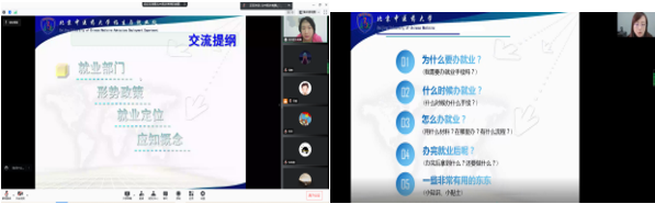 随后,孙静老师为同学们详细介绍了就业信息填报以及就业手续办理的流程。孙老师强调了就业办理的重要性,从办理时间、地点、流程三方面系统地讲述了如何办理就业,提醒同学们就业办理完成后的注意事项,分享了获取就业及档案信息的常用网站及订阅号,预祝同学们顺利就业!