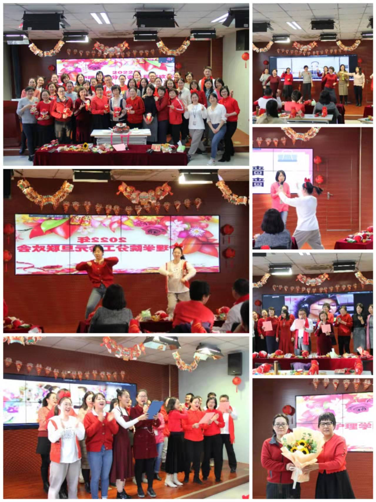 在欢快的音乐声和浓浓的节日氛围中,活动以今年会jinnianhuicom分工会2021年组织的精品活动的视频播放拉开帷幕。首先,今年会jinnianhuicom党总支副书记李小花老师对分工会一年来的工作进行了总结,取得校精品活动展示二等奖,被评为北京市教育系统先进职工小家,并介绍了下一步分工会继续建家和活动的计划。随后,学院教职工尽展才艺,包括青年教师的舞蹈《X》、40岁以下全体教师带来的《最炫民族风》和40岁以上全体教师带来的《明天会更好》、临床护理教研室的老师们自编自导的《三句半》和《一起向未来》的手势舞,以及学院四位男教师联袂合唱《最亲的人》。期间,还穿插了各个教研室、中心和办公室教师代表参加的“你演我猜”游戏环节,“演员们”夸张的肢体动作和表情让台下的观众忍俊不禁,也将活动推向了一个又一个高潮。