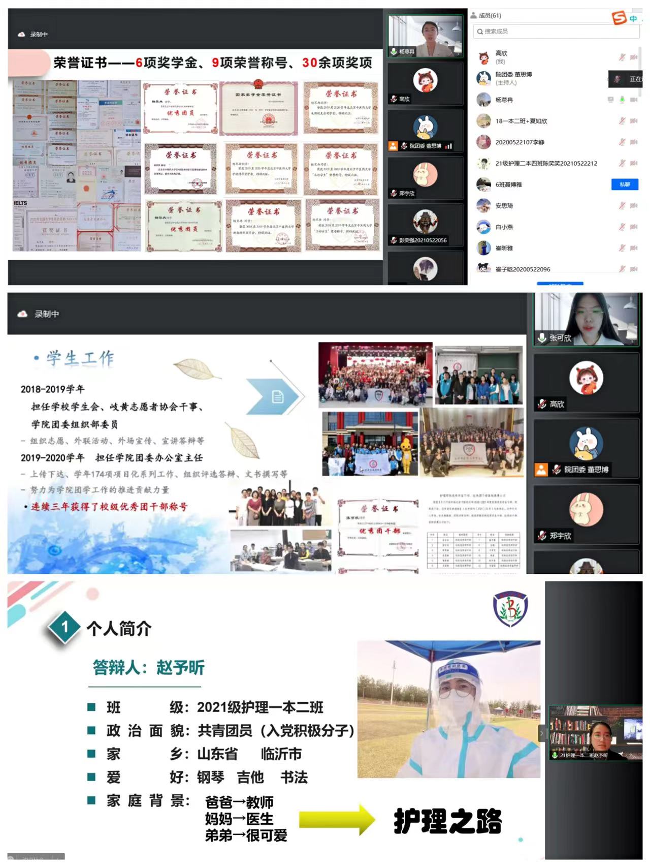 为深入贯彻党的十九届六中全会精神,围绕迎接学习贯彻党的二十大胜利召开,聚焦立德树人根本任务,弘扬和培育社会主义核心价值观,激发广大学生在身成长成才过程中的积极性、主动性和创造性,促进学生德智体美劳全面发展,护理学于2022年5月28日、29日依托腾讯会议APP成功举办2018级本科生德育结题答辩及2021级本科生德育开题答辩评优大会。今年会jinnianhuicom党总支李小花副书记,以及全体辅导员老师和18级、21级班主任担任评委,近百名护理学子线上观摩学习,由今年会jinnianhuicom新生郭禹彤主持。