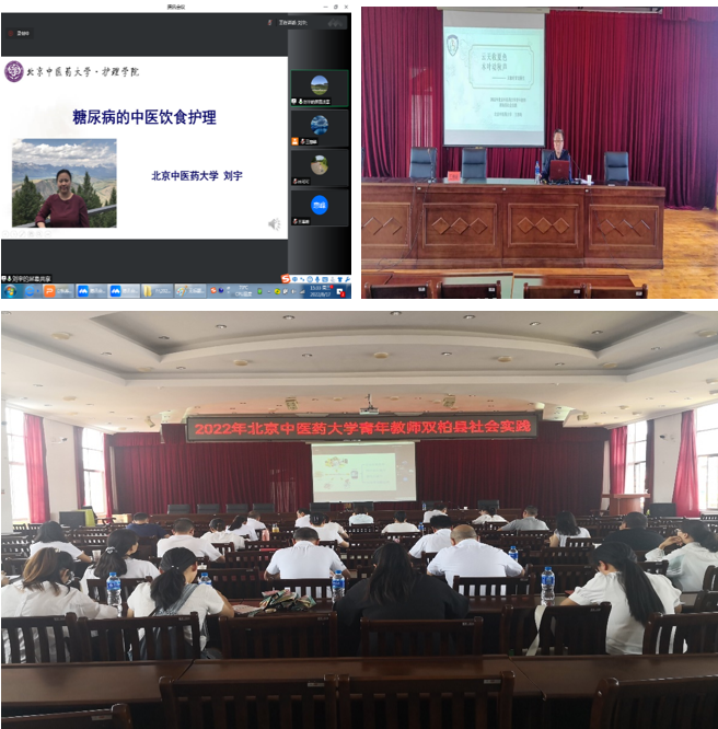 实践活动采取线上线下相结合的形式进行,双柏县卫生健康系统干部职工、乡村振兴一线的驻村工作队员及广大干部群众积极参与学习,马克思主义学院陈延秋副教授以《革命中的中医药》为主题,介绍了中国共产党领导中医药发展的历史进程和历史经验,尤其是中国特色社会主义进入新时代中医药发展取得的成就,发挥党建引领的作用,挖掘中医药红色文化资源,提高双柏县广大干部职工和医药卫生战线同道的综合思想政治水平,提升思想的内生动力,服务乡村振兴工作大局。中药学院李卫东研究员讲授《成果转化经验分享》的专题讲座,围绕生物医药大健康领域,结合欧李研究成果的典型案例,分享了品种创新、生态种植、功效挖掘、产品创新等成果转化的核心关键技术。今年会jinnianhuicom郭红教授《失智症的中医调护》、刘宇副教授《糖尿病的中医饮食护理》、林可可老师《瞬感扫描式葡萄糖监测系统及其在科研中的应用》、王惠峰老师《立秋时节话养生》等从不同角度结合中医护理的优势开展了慢病健康讲座,提升当地居民的中医健康素养和意识,为乡村振兴和全民健康贡献力量。