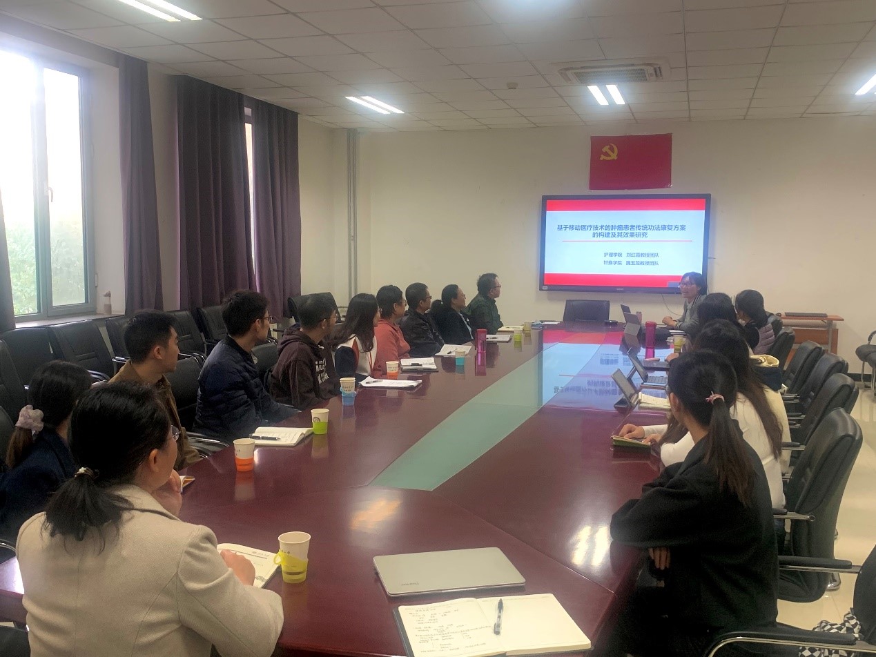 会上,刘红霞团队先就课题的研究背景、研究目的、研究内容和方法、研究的理论依据、研究流程及预期的研究结果等进行了详细报告。汇报结束,双方团队进行了现场交流讨论。魏玉龙教授对课题组前期准备工作和努力给予了充分肯定,认为课题研究基础扎实、研究思路清晰、目标明确、方法路径可行,肯定了课题开展的意义与实用价值,并针对移动医疗技术的定位、肿瘤患者的具体病种和分期、传统功法康复方案的设计提出了指导性意见。