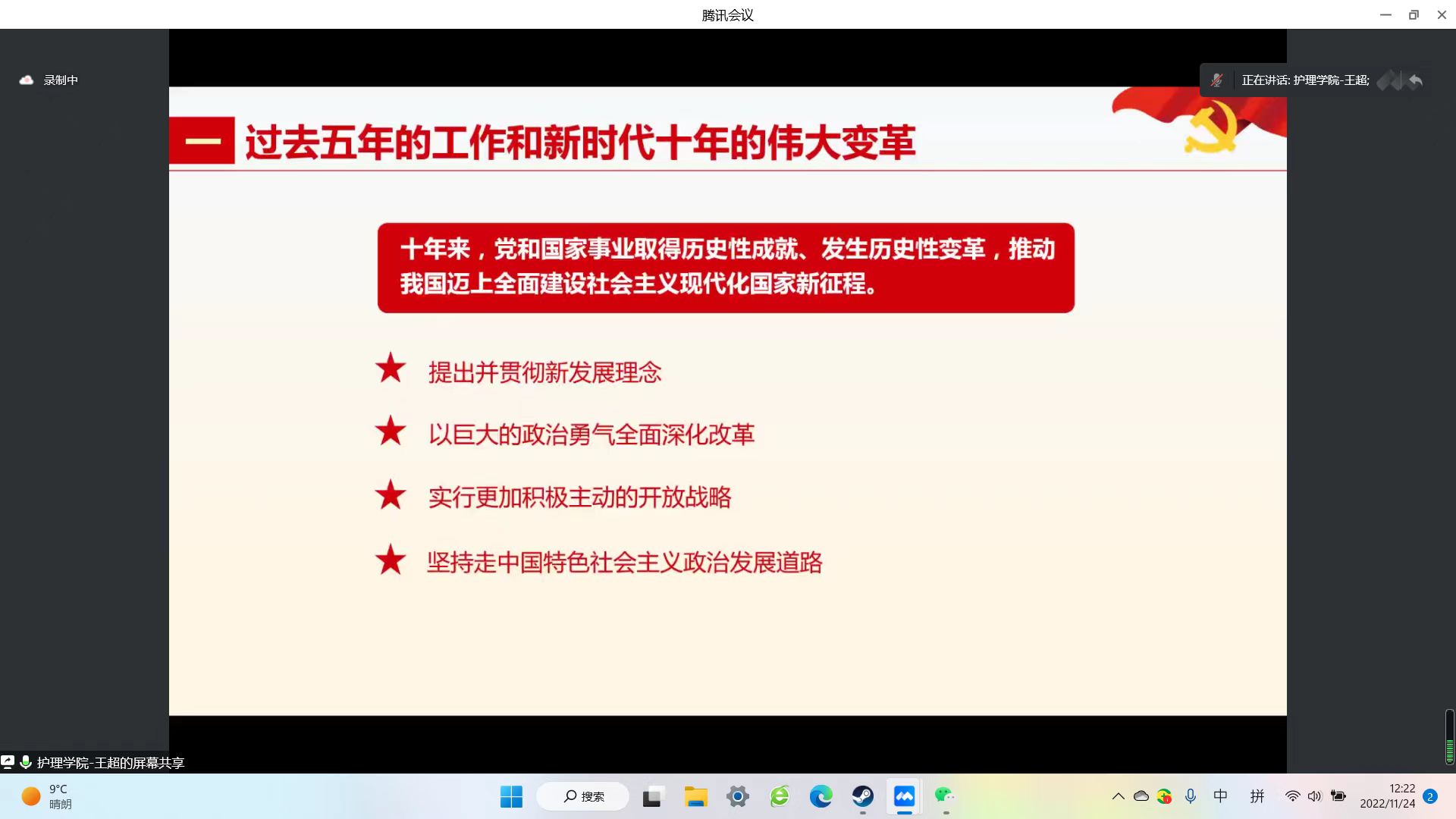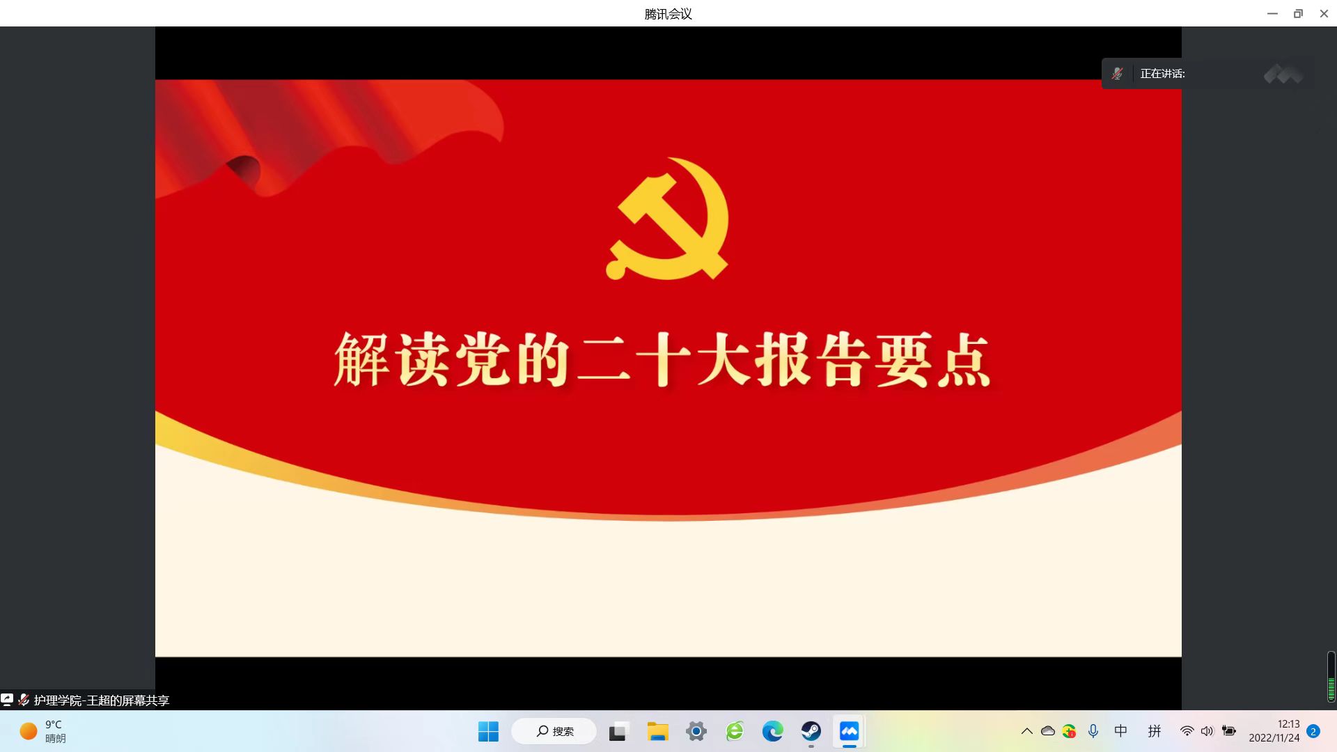 为深入学习贯彻党的二十大精神,11月24日中午,今年会jinnianhuicom党总支书记王超为学院师生党员和积极分子讲授党课,党课以线上会议形式开展,全院共184名师生党员和积极分子参与。