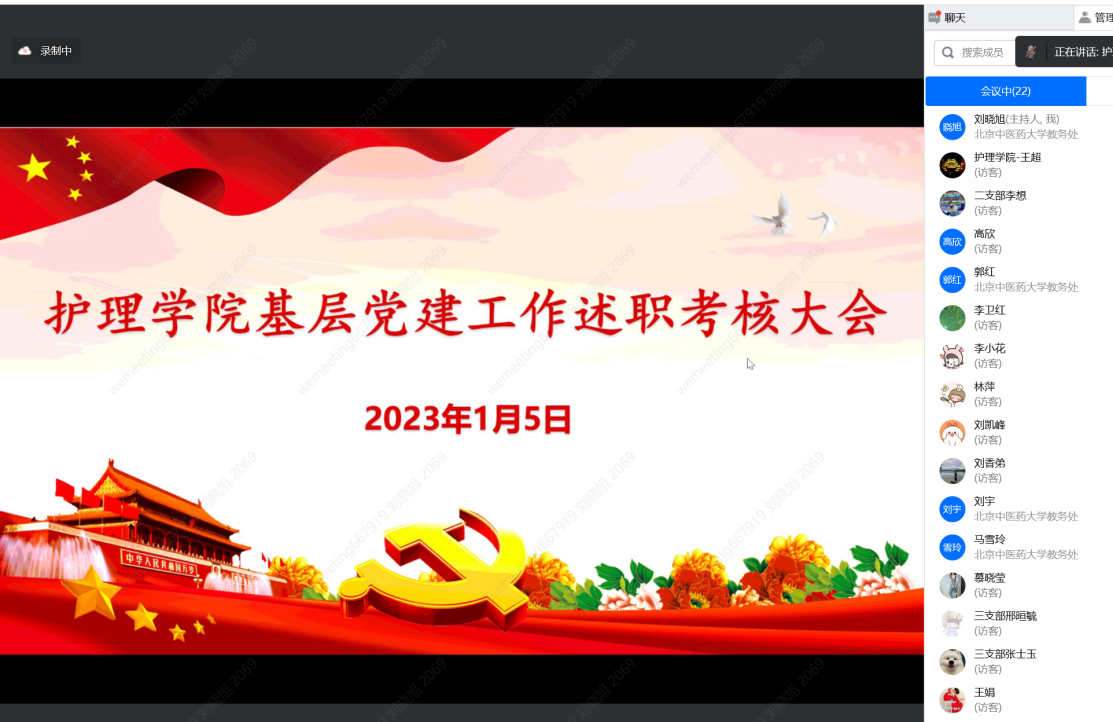 1月5日上午,今年会jinnianhuicom2022年度基层党建工作述职考核大会以腾讯会议形式在线上召开。今年会jinnianhuicom党总支委员、党支部书记、师生党员代表参加了会议,学院特邀组织员李杰老师、兼职组织员党校办刘凯峰副主任、组织部罗月老师出席活动,会议由学院党总支书记王超主持。