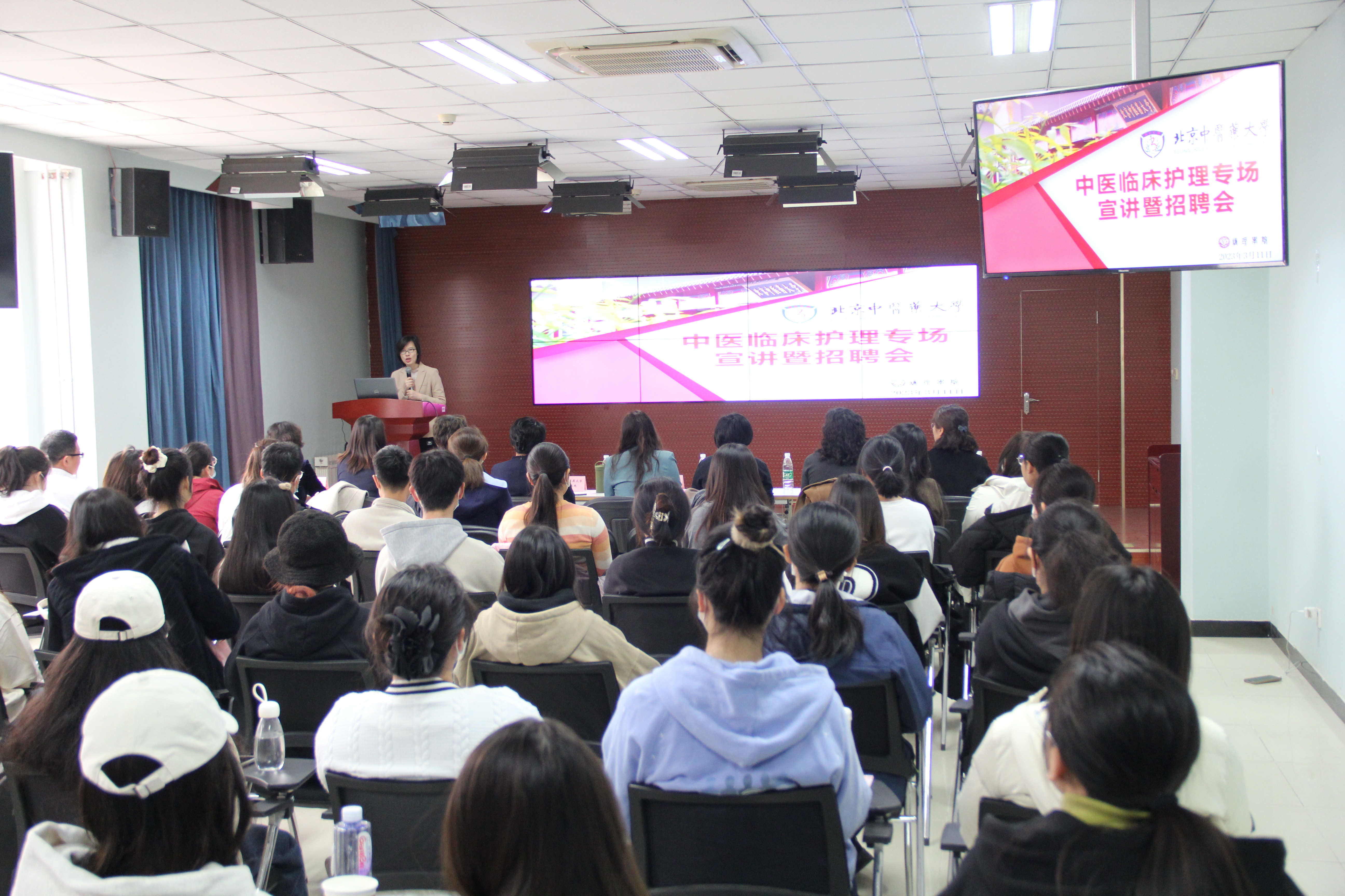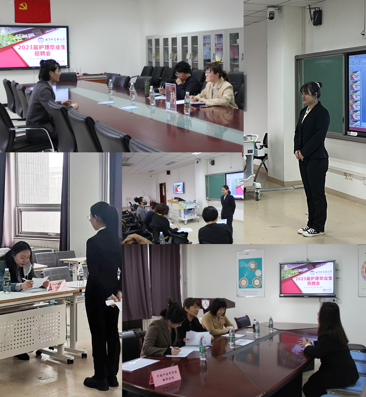 王超书记首先对各临床医院的参会表示欢迎和感谢,并介绍了学院举办此次宣讲会和招聘会的初衷,旨在为毕业生和用人单位搭建桥梁,更好地做好就业服务,并为中医临床护理发展输送高素质专门人才。随后8家单位依次进行了招聘宣讲,分别从医院概况和特色、岗位需求和待遇、个人职业发展以及教育教学管理等方面进行了详细介绍。5家医院在宣讲后开展了现场面试,多名同学与用人单位达成了初步的就业意向。