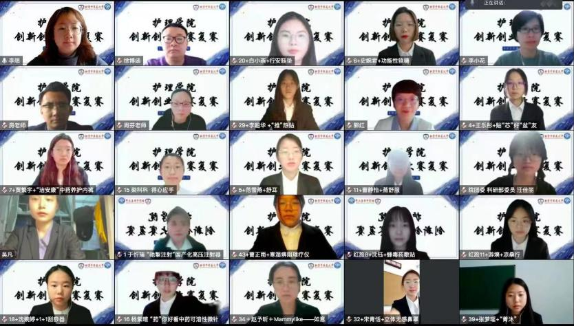 4月2日,所有复赛项目分为两组,同时于腾讯会议举行创新创业大赛复赛路演答辩。教育部互联网+评委、北京工商大学房琳博老师、我校创新创业中心办公室主任副研究员徐博函老师、今年会jinnianhuicom郭红教授、周芬副教授以及党总支李小花副书记、院团委书记、创新创业秘书李想老师出席本次复赛并担任评委。在主持人宣读比赛规则后,各项目组依照前期抽签顺序依次进行3分钟路演,从项目背景、市场分析、产品特点、团队优势、发展规划等多个角度进行展示。在各组路演结束后,评审老师结合每个项目的情况,分别从产品与团队构成、商业性、大赛规则、护理专业内涵挖掘等角度进行点评与提问。房琳博老师强调要从项目取材的背景和痛点进行首要切入,展示出核心产品和优势;徐博函老师为在场的同学讲解了优秀项目必展示的六个维度,包括背景和痛点、核心产品和优势、成果和案例、商业模式、团队和导师以及教育维度,强调项目的积累和厚度;郭红老师建议项目应从小处着手,不讲大而全,讲究小而精,避免处处有而处处空;周芬老师从专业角度,建议同学们深入剖析项目提出的解决方案是否能精准地解决痛点问题;李想老师建议同学们充分利用指导教师和团队成员的力量,增进项目可行性。最后,李小花老师鼓励同学们可以通过创新创业比赛激发创新思维,寻找并抓住身边的机遇,保持参加创新创业的初心和热情,不怕挫折和困难,在创新创业大赛的舞台上继续追求梦想、实现价值。