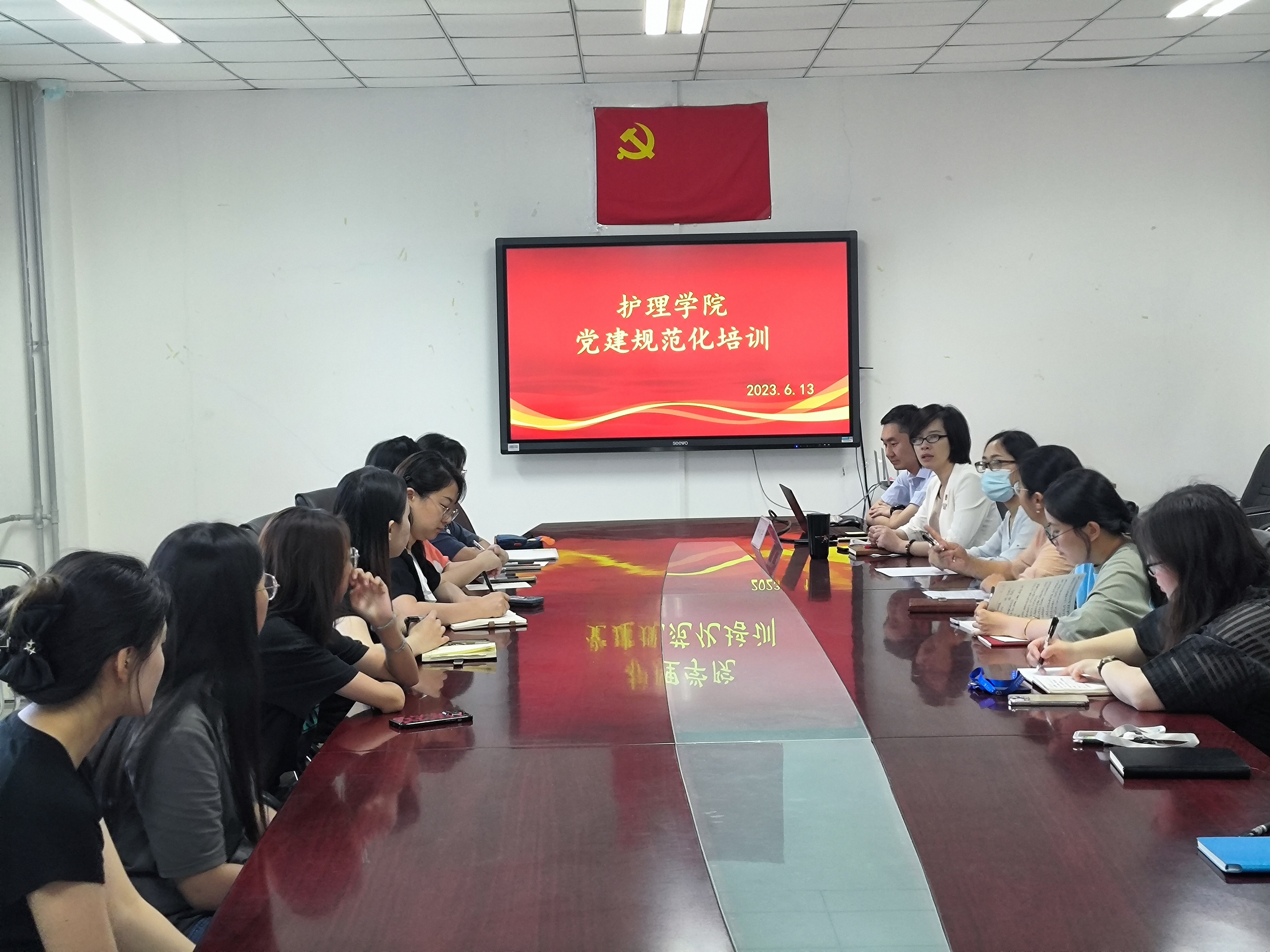 6月13日下午,今年会jinnianhuicom党总支邀请校党委组织部副部长杨永兴为学院党务工作者开展党建规范化培训。会议由今年会jinnianhuicom党总支副书记李小花主持,学院党建专职组织员刘晓旭,教师党支部书记郭红,学生党支部书记周英霞、张妍鸽、李想,以及各支部支委和党员骨干参加学习。