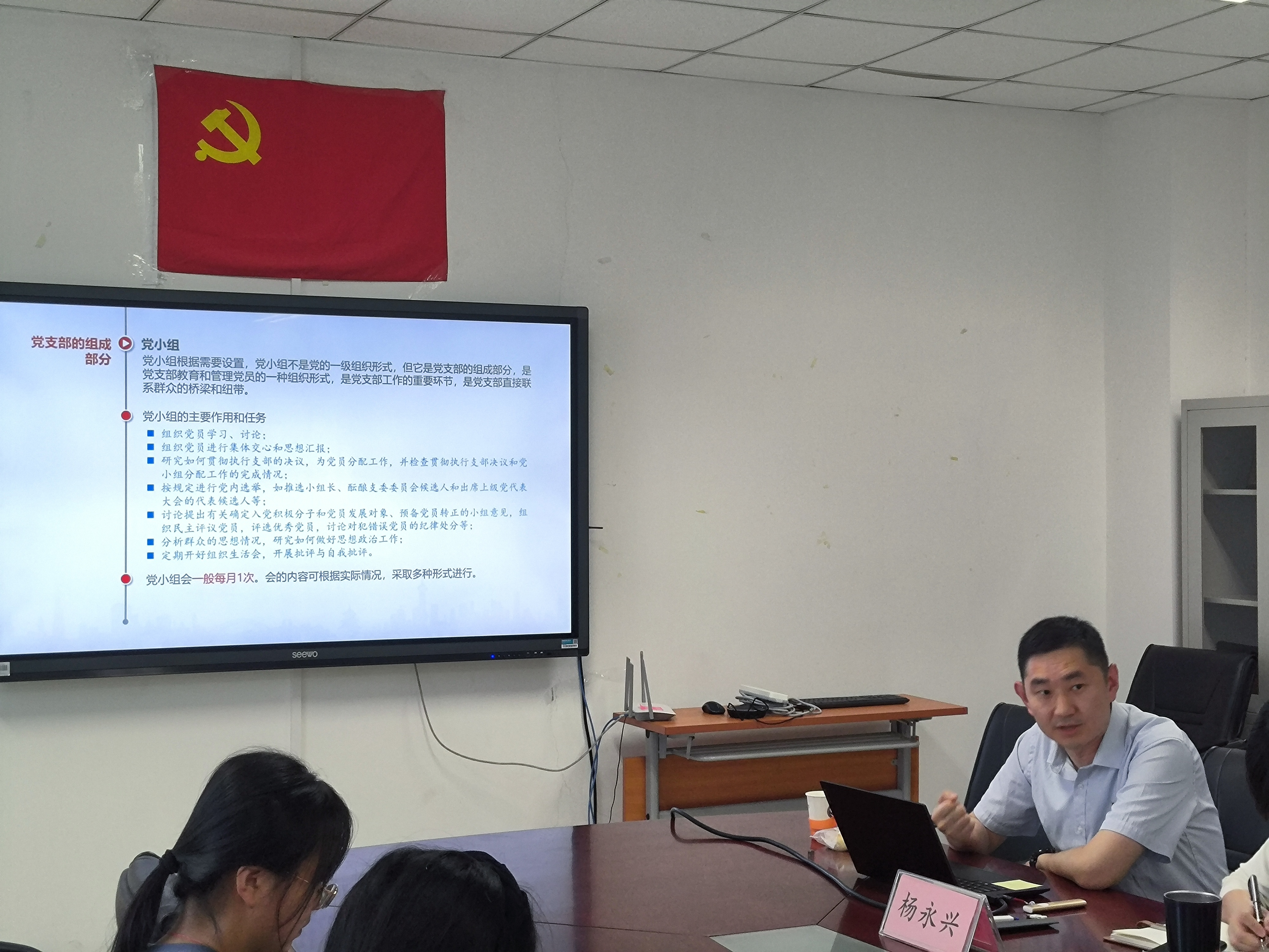 杨永兴副部长以“如何高质量做好基层党支部的党务工作”为题。从“党支部相关知识概述”、“党支部日常工作实务”、“党支部高质量建设路径”三个方面来讲述自己在党务工作方面的经验和心得。通过杨永兴副部长对党支部的基本任务,教职工党支部与学生党支部的不同工作,党支部的三种组织形式,党支部的制度建设,党委员会的产生选举方式以及党支部书记的工作方法的细致讲解,与会老师与同学们对党支部相关知识有了更明确地认识。之后杨永兴副部长又就党支部日常的几类工作会议怎么开、主题党日活动如何设计、党课的注意事项等规范化进行深入讲解。最后杨永兴副部长从“主题团日如何确定主题”“如何彰显学习成效”“党支部工作设计的关键点”“党建工作品牌实例”四个方面,用鲜活生动的例子讲解了党支部高质量建设路径,为今年会jinnianhuicom支部建设方向提出了切实可行的建议。