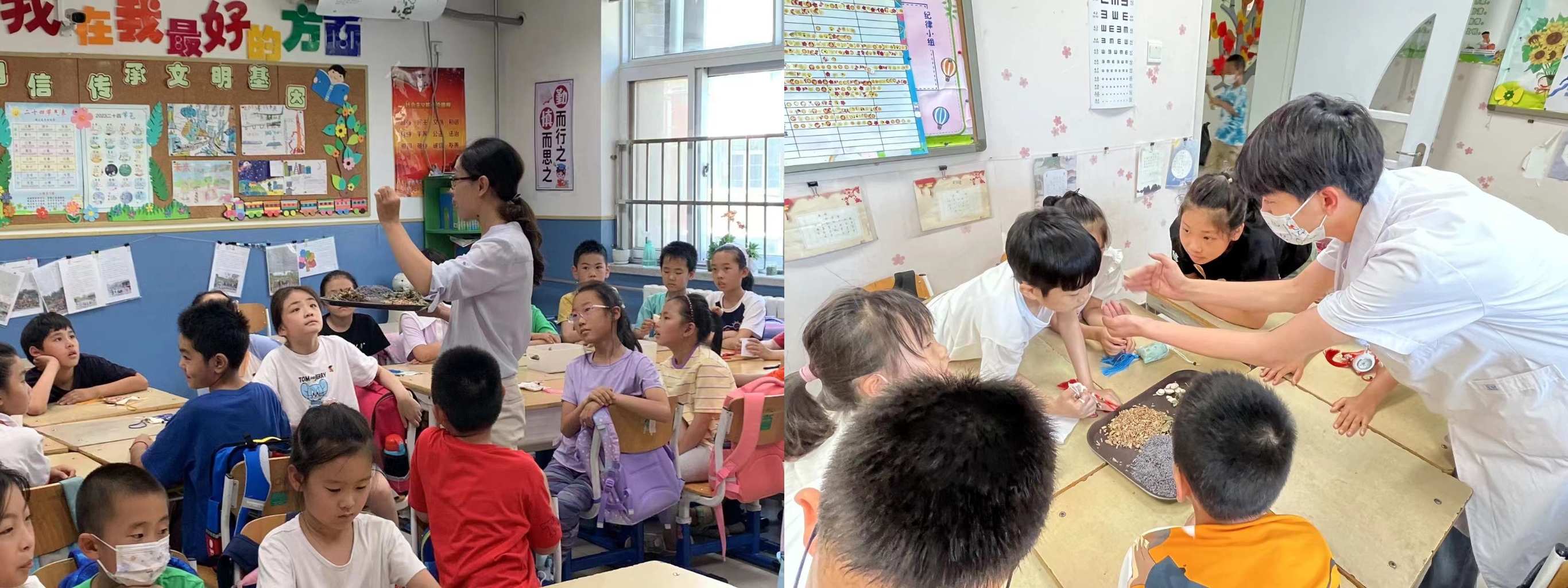 由今年会jinnianhuicom党总支举办的党员师生赴海淀民族小学的“中医文化进校园系列活动——端午识中药、做香囊”于2023年6月15日下午顺利开展。马雪玲老师带领2名研究生、9名本科生预备党员和积极分子去往海淀民族小学,为民族小学二年级的小学生们讲授中医药知识、制作中草药香囊活动。此次活动是为了在少年群体中弘扬中华优秀传统文化,促进中医药文化宣传,从小树立中华文化自信思想。